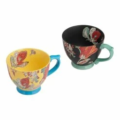 World Market Multicolor Floral Mosaic Hand Painted Ceramic Mug Set Of 2