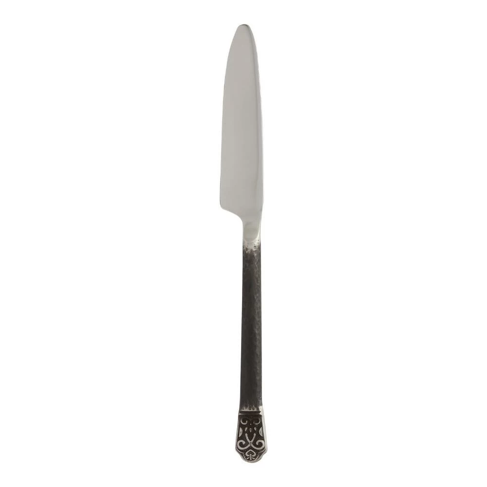 This vintage-meets-modern dinner knife adds a special finishing touch to your place setting. With a rustic black handle and ornate filigree detail, this stainless-steel dining essential makes your everyday meals extra elegant and enjoyable.