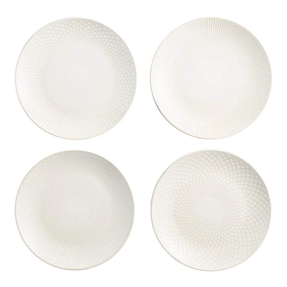 Bring a casual café vibe to mealtimes with these chic stoneware dinner plates. In four textured off-white designs, they mix and match beautifully with our other stoneware pieces to create uniquely dimensional place settings for everyday meals or entertaining.