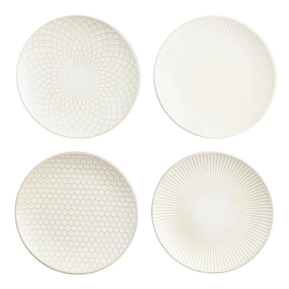 Bring a casual café vibe to mealtimes with these chic stoneware salad plates. In four textured off-white designs, they mix and match beautifully with our other stoneware pieces to create uniquely dimensional place settings for everyday meals or entertaining.