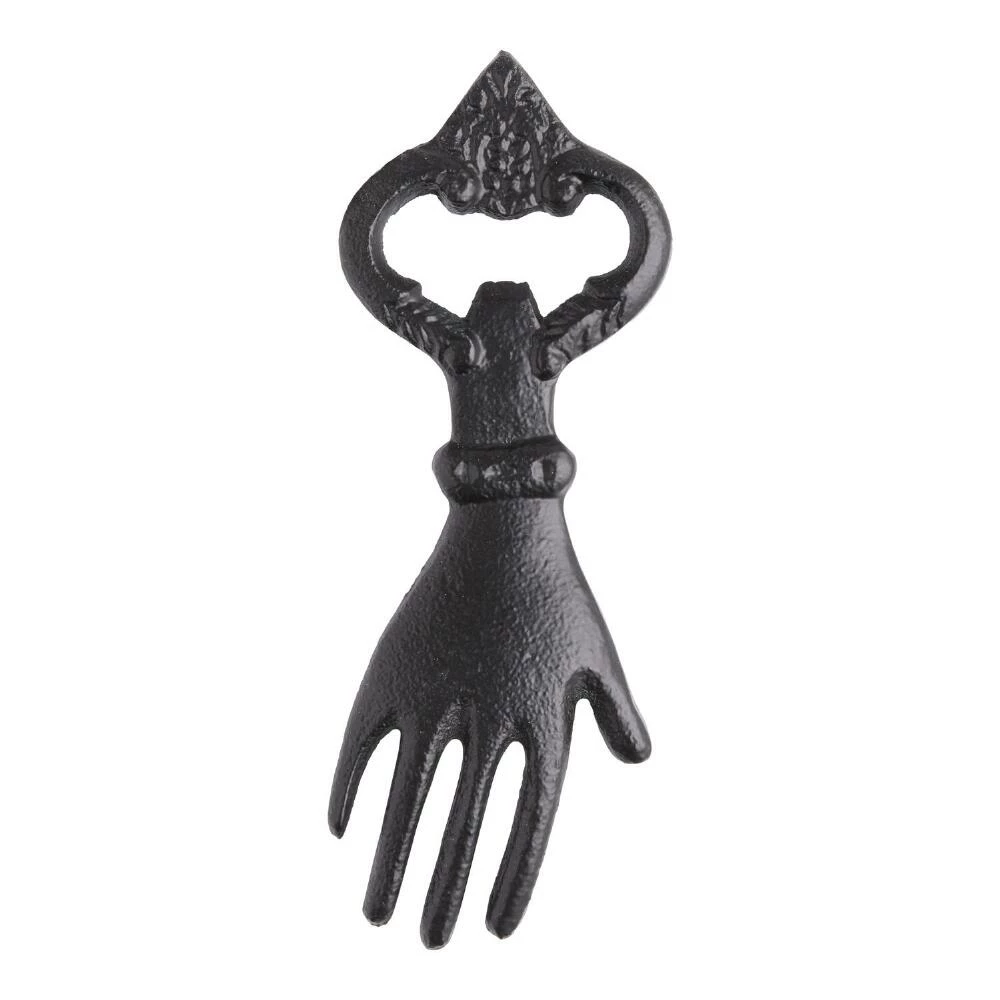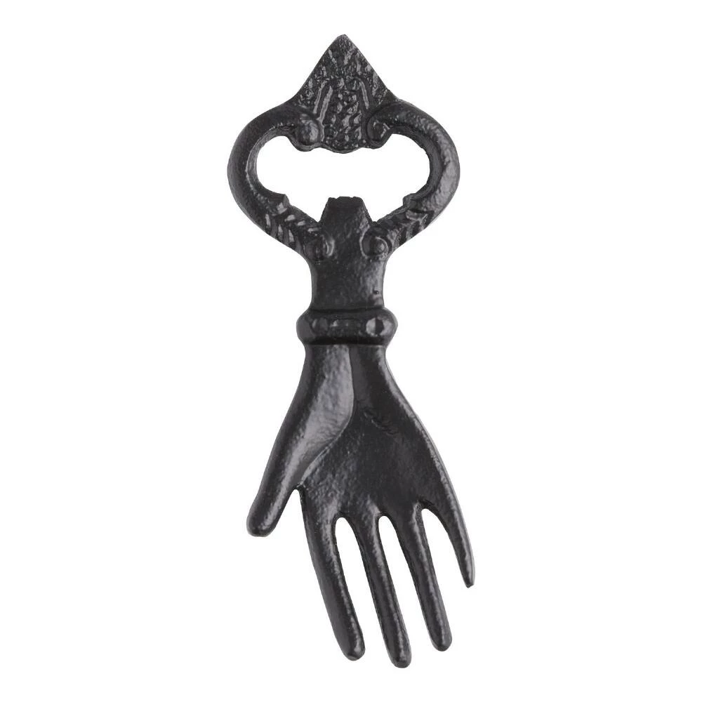 Give your guests a helping hand when you open beverages with this bottle opener made of handcrafted iron in a matte black finish. The chic open hand silhouette paired with an ornate opener end is reminiscent of wrought-iron design, adding timeless charm to your bar collection.