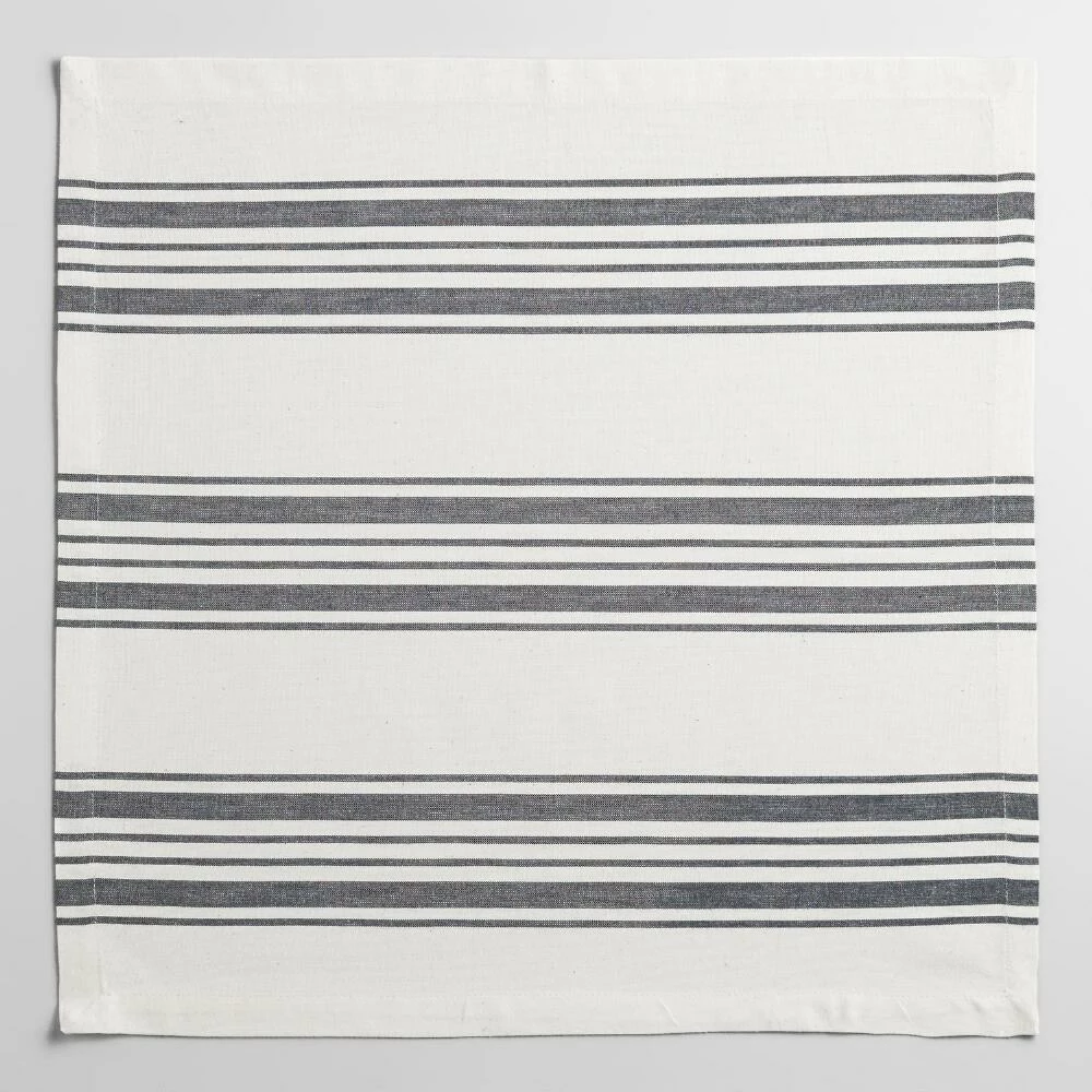 Perfect for everyday use, our classic cotton napkins feature black French-style stripes set against a natural background. Pair them with our coordinating tablecloth, table runner and placemats for a put-together look at a can’t-miss price.