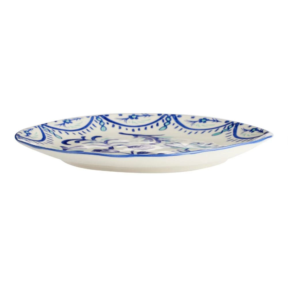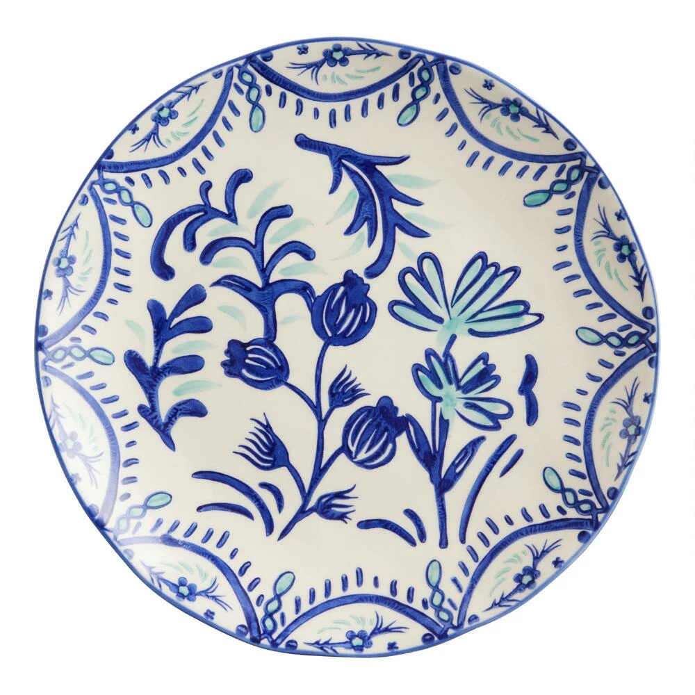 Hand-painted with care, this dinner plate gives your place setting a countryside feel with whimsical florals. Made of organically shaped stoneware with cheerful pops of blue and aqua, it has a perfectly rustic, mix-and-match appeal.