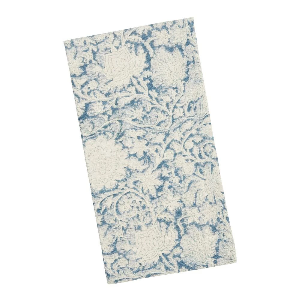 Romance and elegance abound in our cotton-linen blend floral napkins featuring large ivory blooms on a blue ground. With their classical painterly vibe they effortlessly elevate your table setting and coordinate with a wide variety of color schemes to make a versatile addition to your table linens.