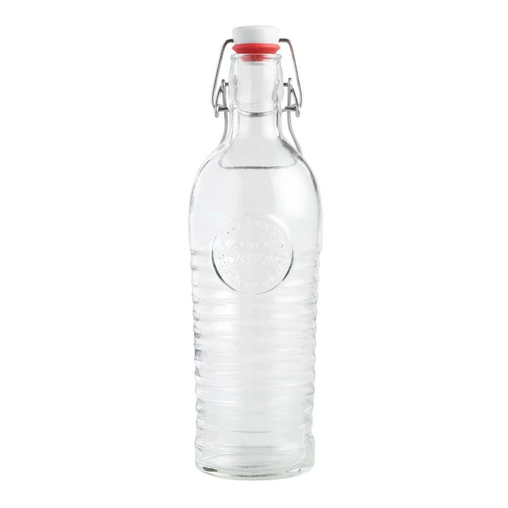 We brought our official Bormioli Rocco bottle back from Italy, where it’s commonly used to store, serve and gift high-quality oils, vinegar and even homemade wine. Embossed with an authentic seal of quality and a textured ring pattern that provides an easy grip, this refined bottle is topped with an airtight clamp lid.