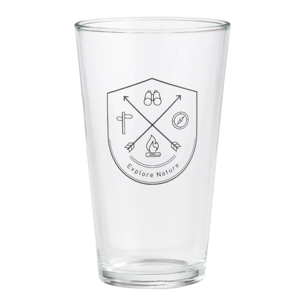 Combine your love of adventure with practical barware in this classic 16-ounce pint glass featuring a “Explore Nature” design. This exclusive glass is the perfect vessel for drinking your favorite brews as well as a trusty and rugged companion for mixing drinks.
