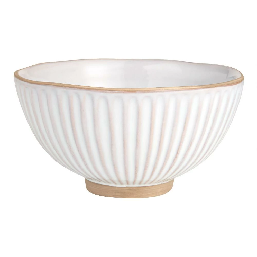 Our extra-large stoneware noodle bowl adds cool composition to your current place settings. It’s made with texture-rich ribbing and a white reactive glaze that allows a touch of the natural clay color to peak through, making each piece perfectly unique. Fill this robust bowl with pho, ramen or stir-fried dishes to share.