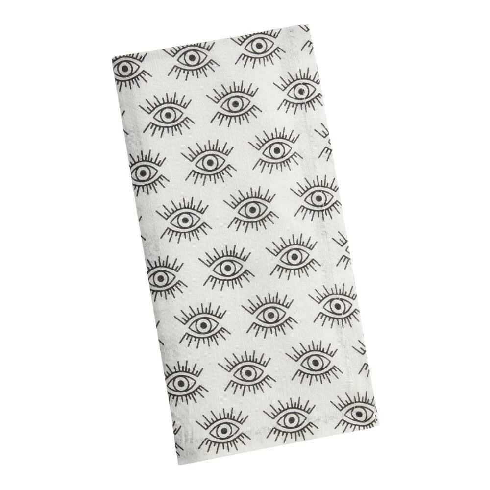 Bring a pop of color and pattern to your dining table with our cloth napkins. Adorned with rows of eyes on a white ground, these printed napkins are made of 100% cotton and are machine washable for convenient reuse meal after meal.