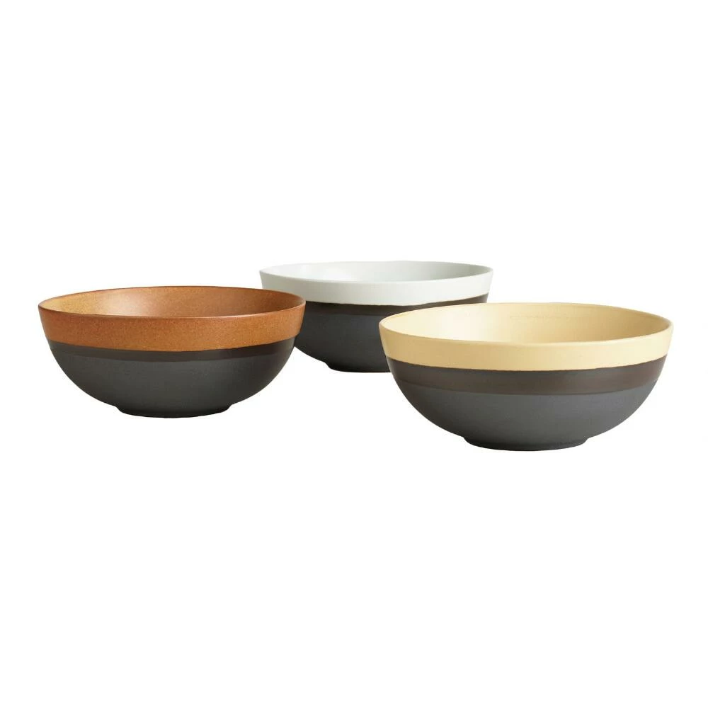 Set an elegant, tranquil table with our rustic noodle bowl inspired by the spirit of sleek and simple Asian design. Made of stoneware, the set includes bowls in three matte colors with an earthy and organic appeal. Mix with your current place settings or match with other pieces from the collection for elevated entertaining and everyday dining.