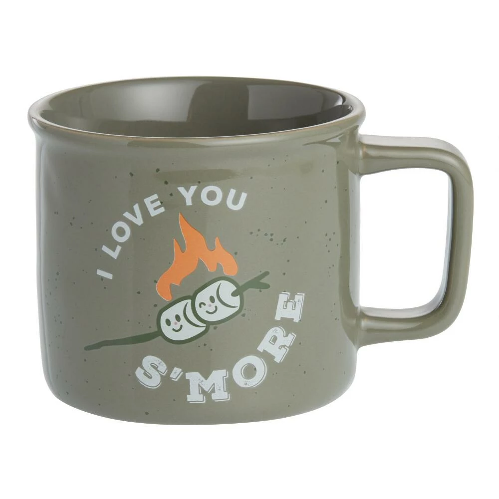 A cool and clever gift for anyone who loves the great outdoors, this mug is adorned with the phrase, “I love you s’more”. Made of stoneware with a speckled gray ground that resembles rustic enamel and a picture of marshmallows roasting on a stick, it brings a camping vibe to your everyday cup of joe. With a classic silhouette, it’s sure to become an instant favorite in any mug collection.