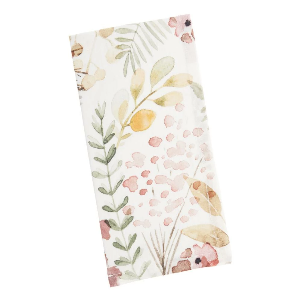 Set a beautiful table with our exclusive, 100% cotton napkins featuring muted green ferns and pink flowers atop a white ground. The subtle details in the design add the perfect pop of pattern for everyday use or casual dinner parties.