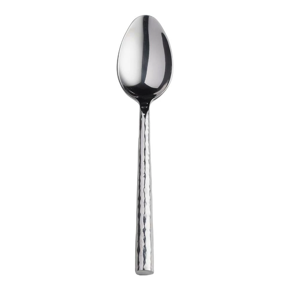 Formal or relaxed table settings shine brightly when the hammered texture of our stainless steel soup spoon catches the light. Comfortable in the hand with a balanced weight, these beautiful utensils are a joy to use.