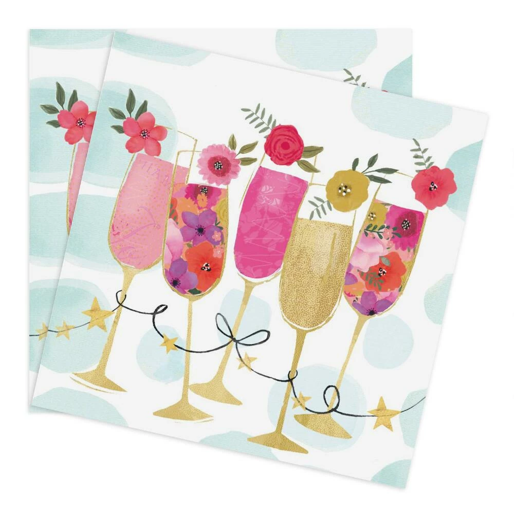 Set these colorful beverage napkins out at your next soiree for a touch of fun. Featuring four glasses filled with spirits and adorned with flowers, they’re sure to brighten happy hour at home.