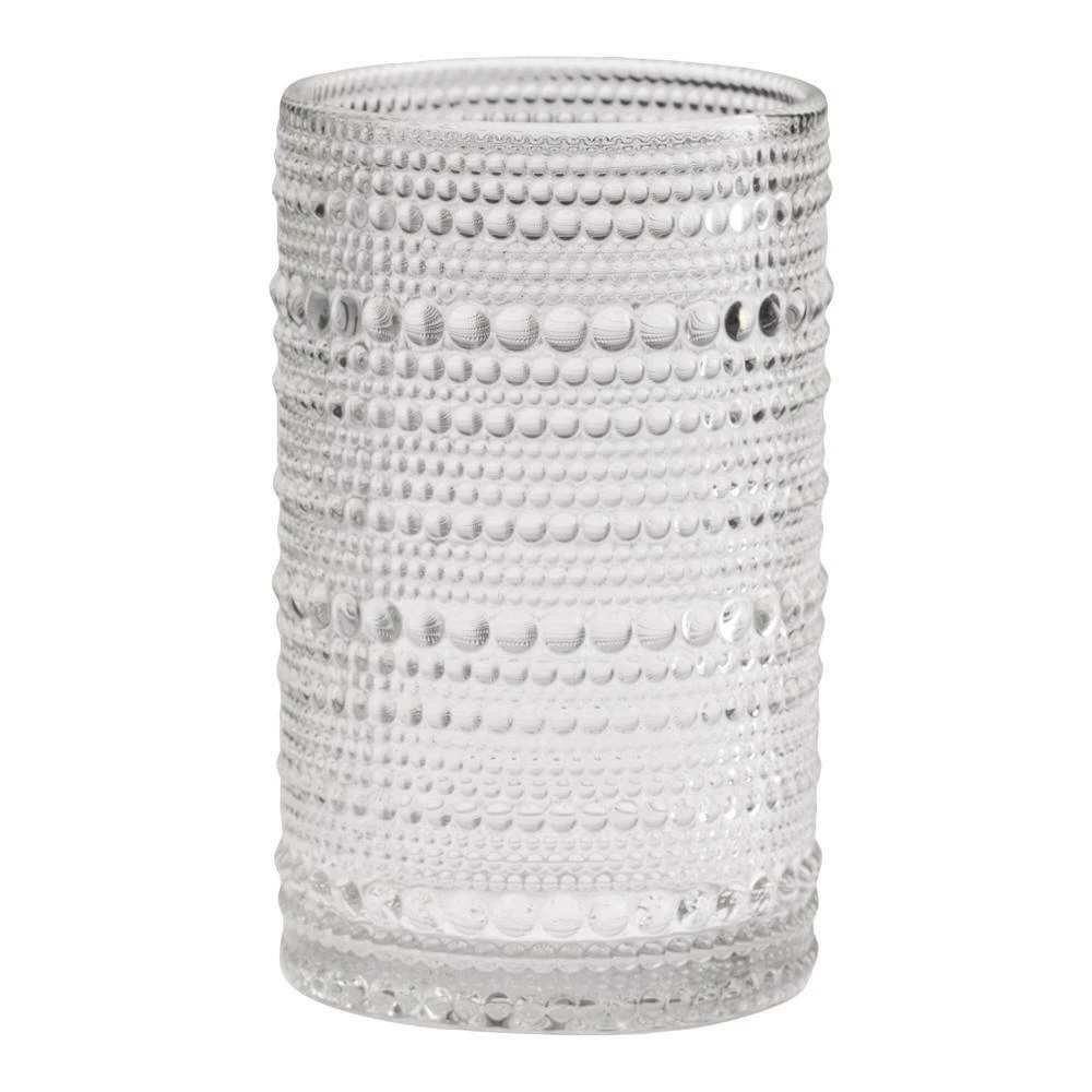 Taking inspiration from antique glassware found in Parisian flea markets, our clear Jupiter drinking glass is detailed with bands of raised beads. Full of elegant texture, this vintage-style bar glass is ideal for everyday use whether you’re sipping iced tea or serving up cocktails and spirits on the rocks.