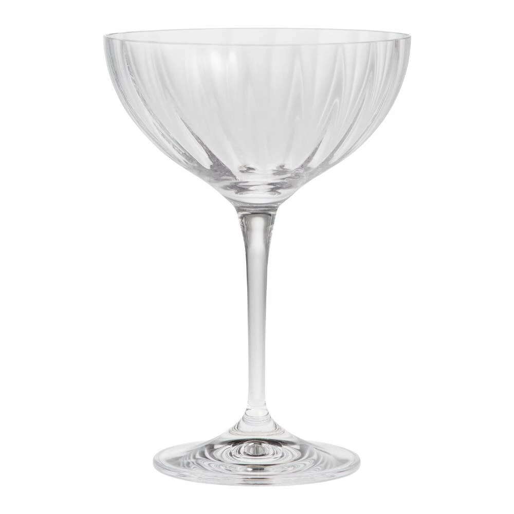 Made in the Czech Republic, a country famous for its fine glassware, these mesmerizing, broad-bowled coupe glasses are mouth blown from lead-free crystal. Their gently twisting optic pattern brings a stylish, sophisticated look to cocktail hour.