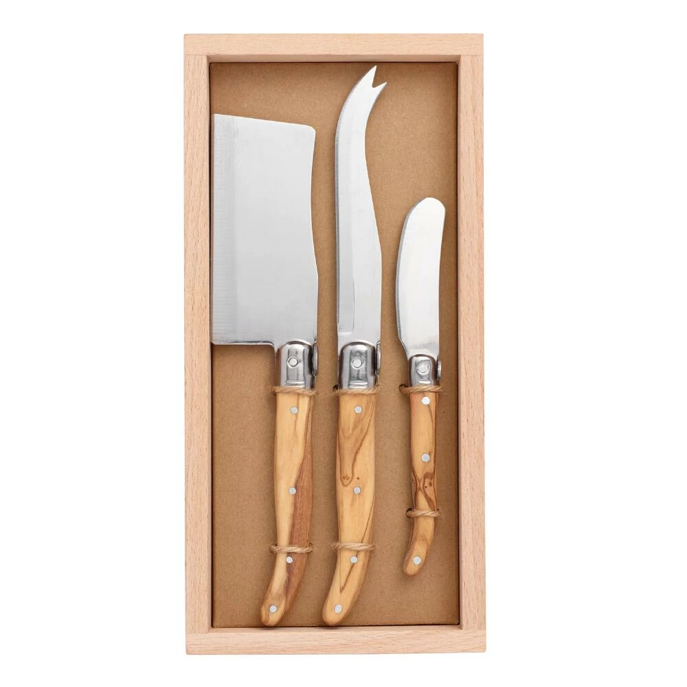 Our finely crafted cheese knife set includes a cheese spreader, serving knife and cleaver with smooth olive wood handles in a beech wood gift box. Whether you’re hosting a wine and cheese party or serving a traditional cheese course, these three knives provide expert assistance.