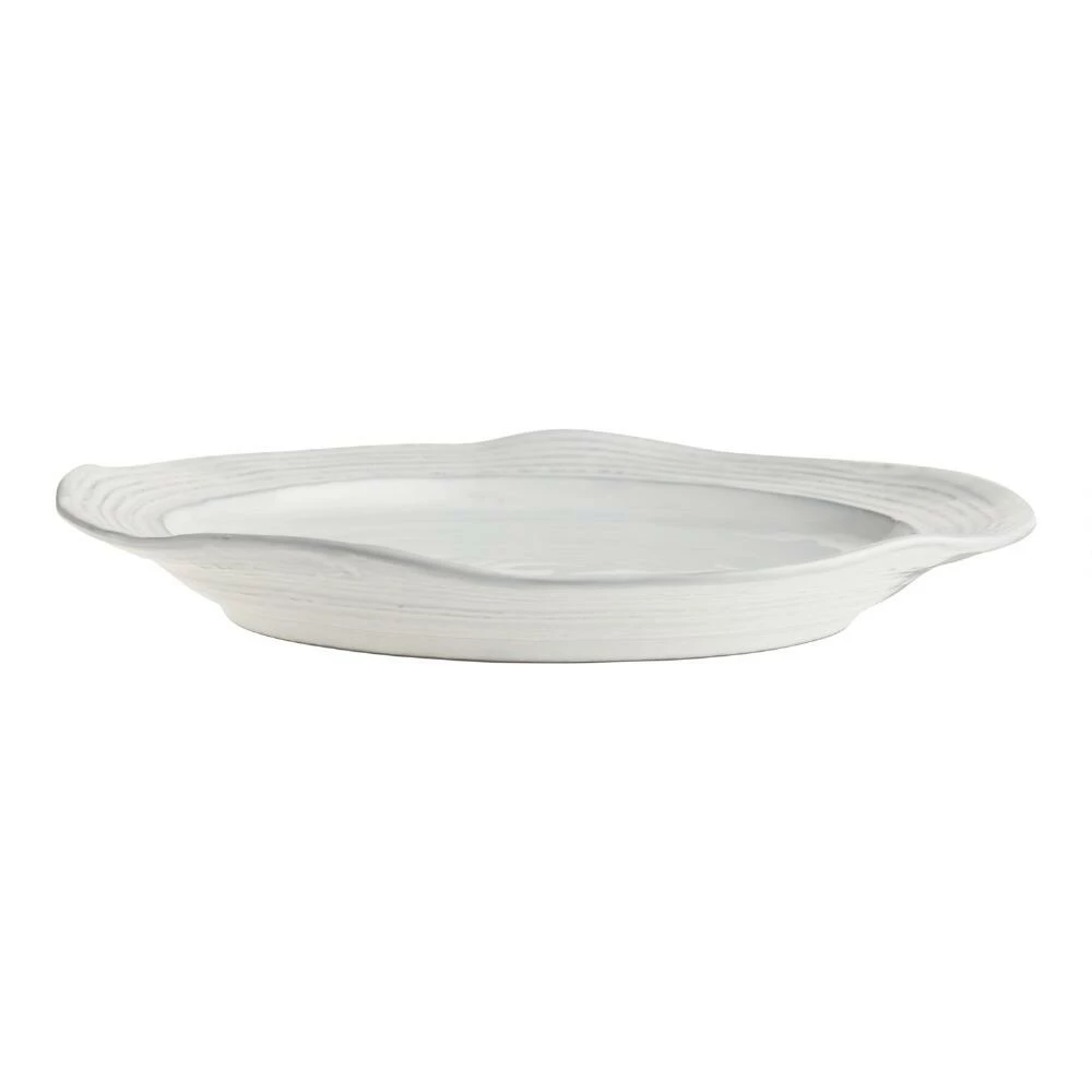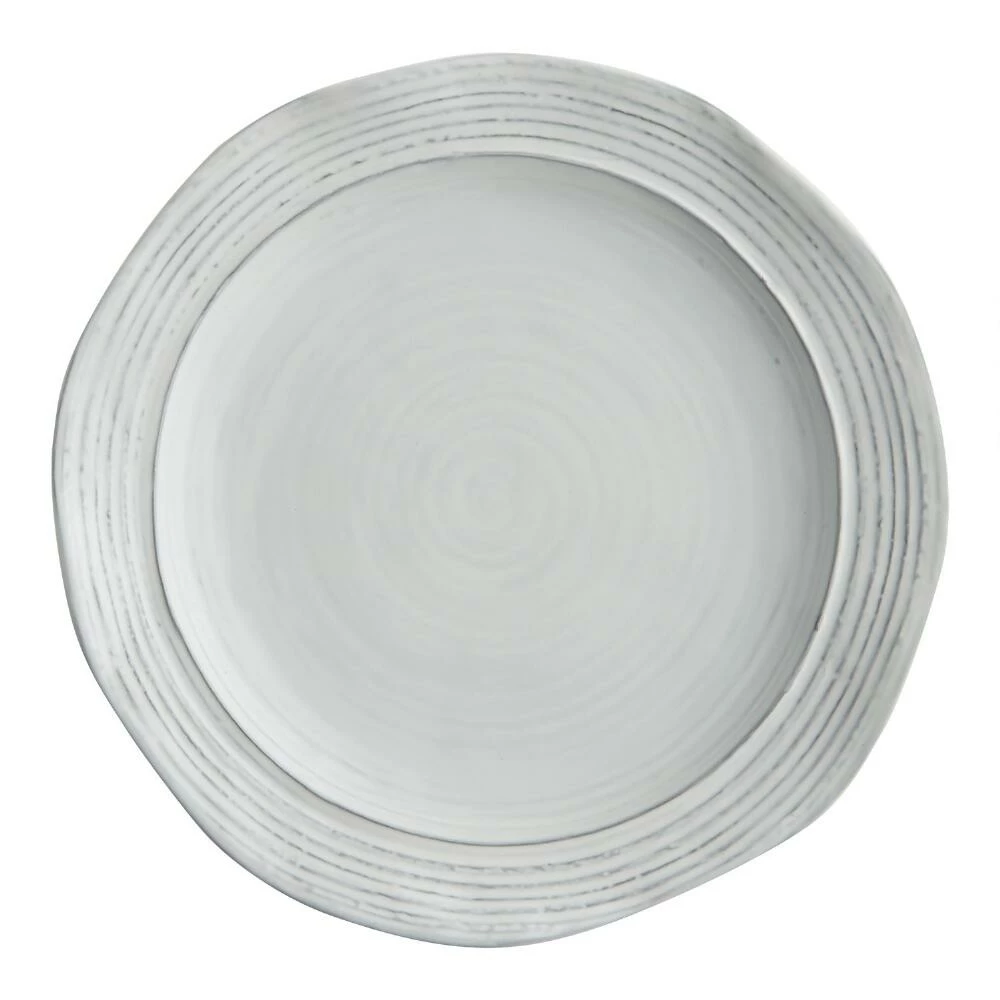 Designed with a rustic organic shape and ribbed rim detail, the Park salad plate layers well with chic farmhouse tables and complements pattern-rich tastes too. Made of gray clay that peeks through the glossy white glaze, it offers unique depth and dimension to everyday dining or entertaining.