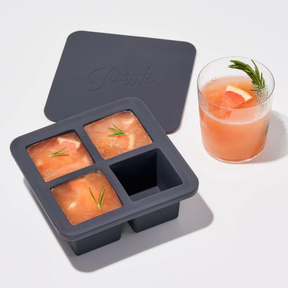 This top-of-the-line tray makes four oversized ice cubes that keep beverages chilled longer without diluting the contents. Crafted of silicone, the tray features an internal steel frame to stabilize water while transporting from faucet to freezer. The included lid protects against freezer burn and blocks unsavory food flavors from seeping in.