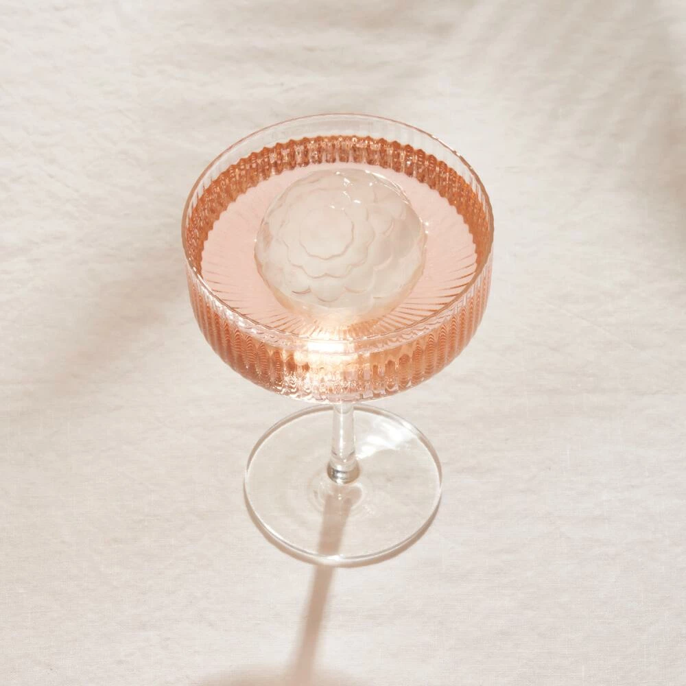 Add an ornamental element to cocktails and cold drinks with a spherical, petal-adorned ice cube crafted in a tray designed with chic functionality in mind. The interior steel rim of the 4-cube tray provides steady handling and the high-grade silicone surface with filler holes on top allows for painless refilling and easy cube removal.
