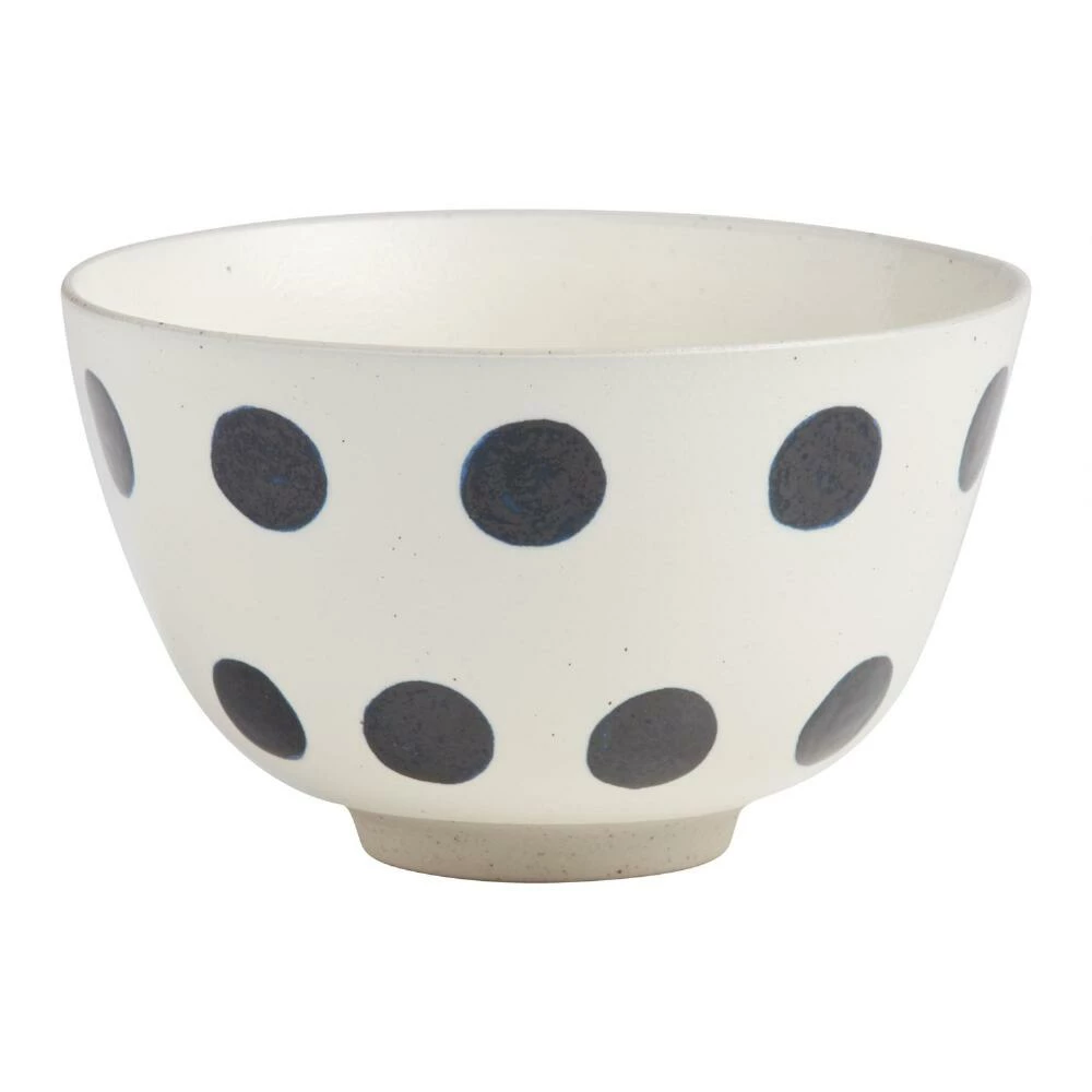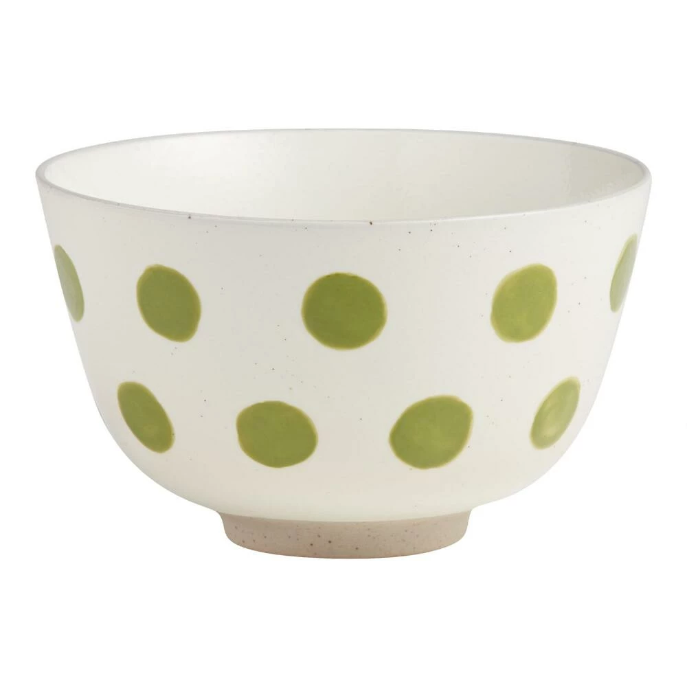 Large bold hand-painted polka dots give this ivory noodle bowl a stylish modern appeal that’s also just a bit playful. Lending a polished touch to any meal, this essential dinnerware piece is perfect for ramen, pho, curries and more. Choose between green and dark-blue polka dots, or mix and match your way to your ideal set.