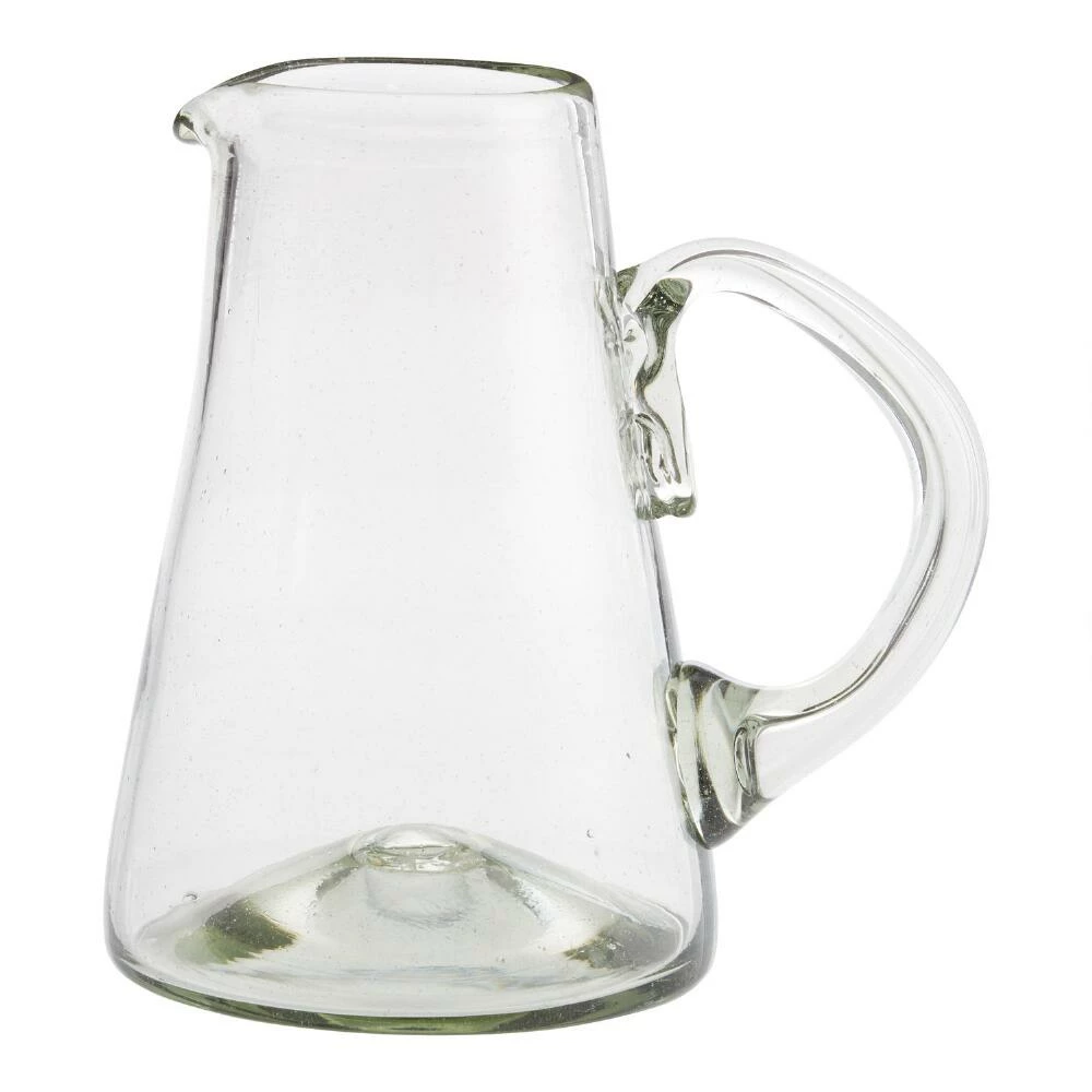 Handcrafted in Mexico by skilled artisans, our pitcher is distinguished by the characteristic green tint and tiny bubbles of recycled glassware. Variations in the artisan’s technique and the recycled glass itself render each piece unique.