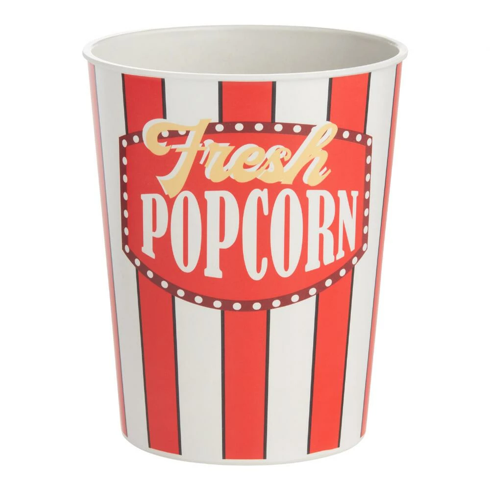 Featuring a red and white striped design inspired by vintage concession stands, our retro container holds perfect individual servings of fresh, hot popcorn on movie night. Crafted from fast-growing bamboo fiber and durable melamine with tall sides, this classic snack carton is dishwasher safe for easy cleanup.