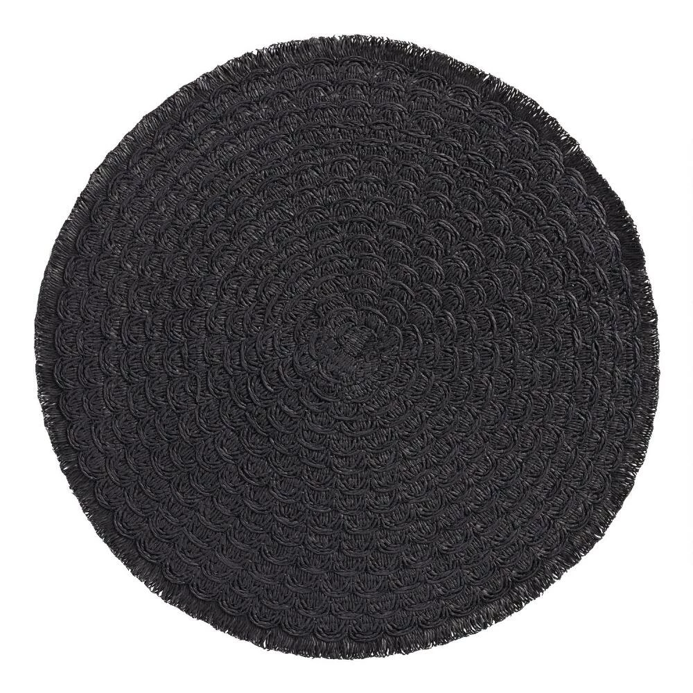 Made from tightly woven paper in a chic black hue, our round braided placemat features a charming, scalloped weave and self-fringe. Layered with more colorful table linens, it brings cozy texture to your indoor or outdoor dining table.