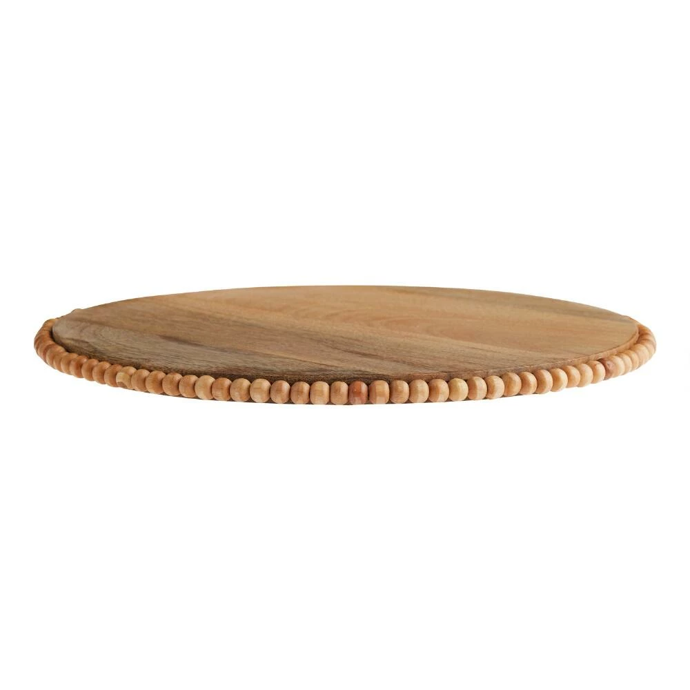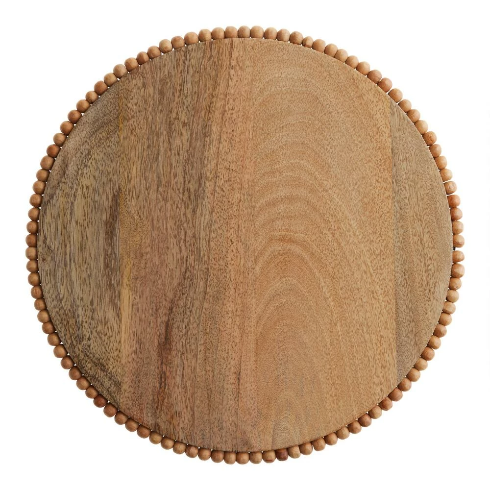 Made in India of mango wood with carved beading around its edge, this charger plate features subtle variations in the wood grain that make each unique. We imagine this serveware adding visual interest to your rustic place settings, corralling frequently used spices and seasonings in the kitchen or displaying home decor and candles in a living space.