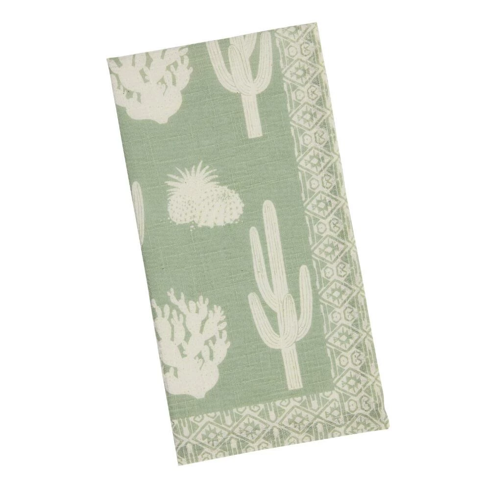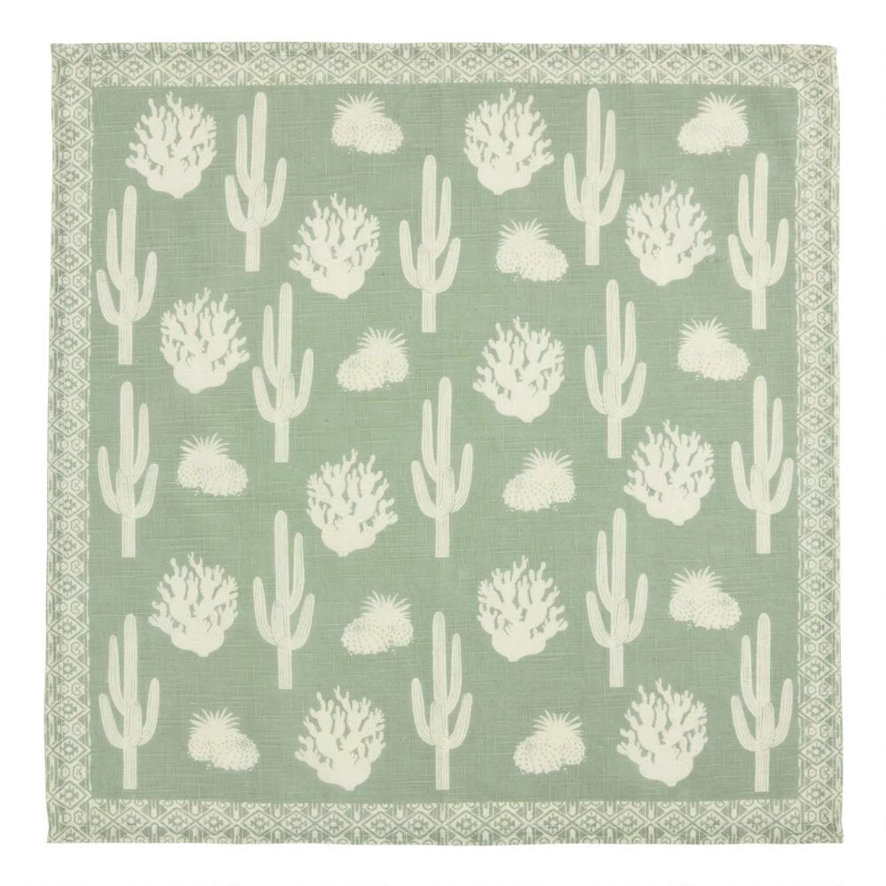 Featuring a desert cactus motif in sage green and white, our exclusive 100% cotton napkins bring a pop of fun pattern and subtle color to your table. Machine washable and easy to care for, they’re great for elevating everyday table settings.