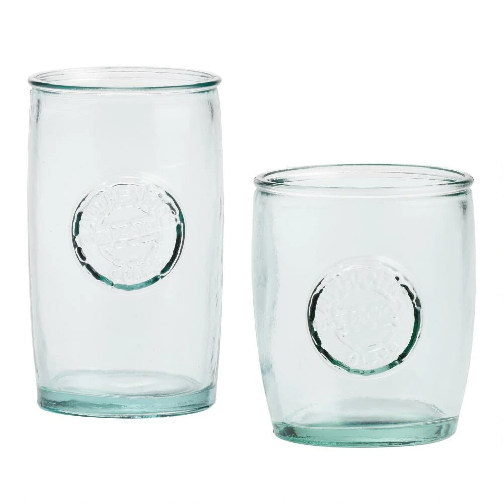 Our drinking glass is crafted in Spain from 100% recycled glass with an attractive green tint and simple, weighty design. Available in two sizes, the highball glass is perfect for mojitos and iced tea, and the double old-fashioned size is just right for a whiskey neat or rum and Coke on the rocks. Featuring a decorative embossed stamp of authenticity, this bar glass lends a touch of European flair to your glassware collection.