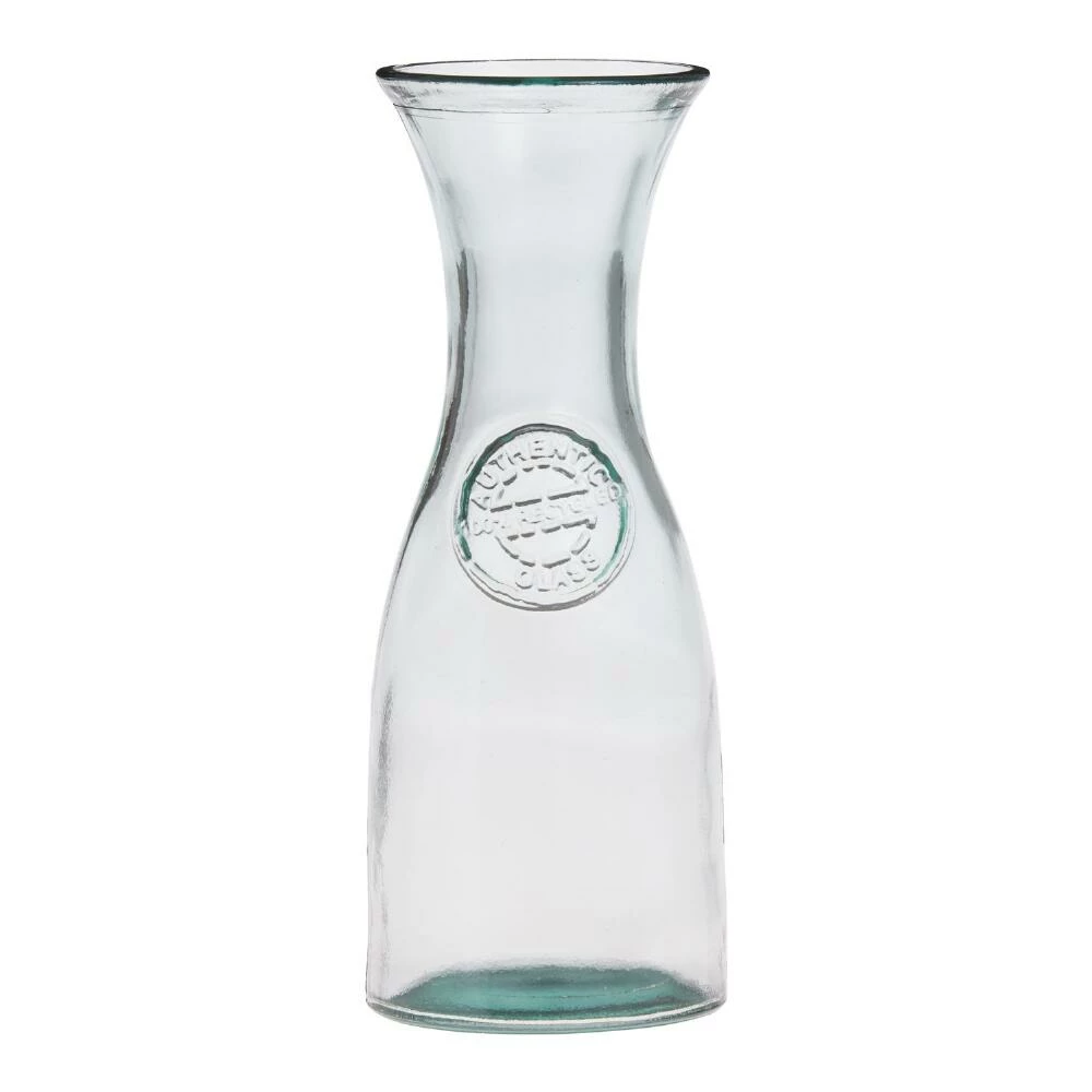 With a wonderful weighted feel in hand, our carafe is handcrafted in Spain from 100% recycled glass with an attractive green tint. Perfect for serving guests everything from chilled orange juice in the a.m. to fruit-infused sangria in the p.m., this serving piece bears a decorative embossed stamp of authenticity.