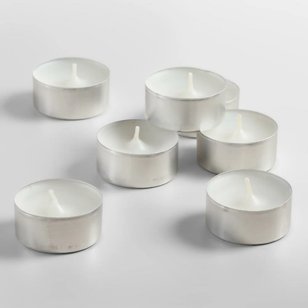 Every home needs a stash of our white tealight candles, imported from Denmark. Crafted from pure unscented paraffin and poured into aluminum cups, these tealights provide long-burning, smokeless illumination that’s just right for impromptu parties or quiet evenings at home. Designed to be used in one of our unique tealight holders, the flame will go out by itself when it reaches the bottom, after about six hours.