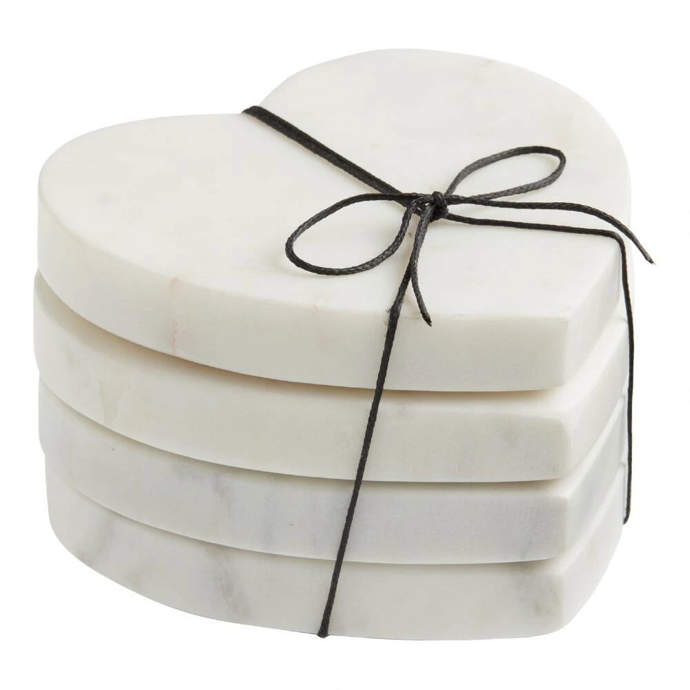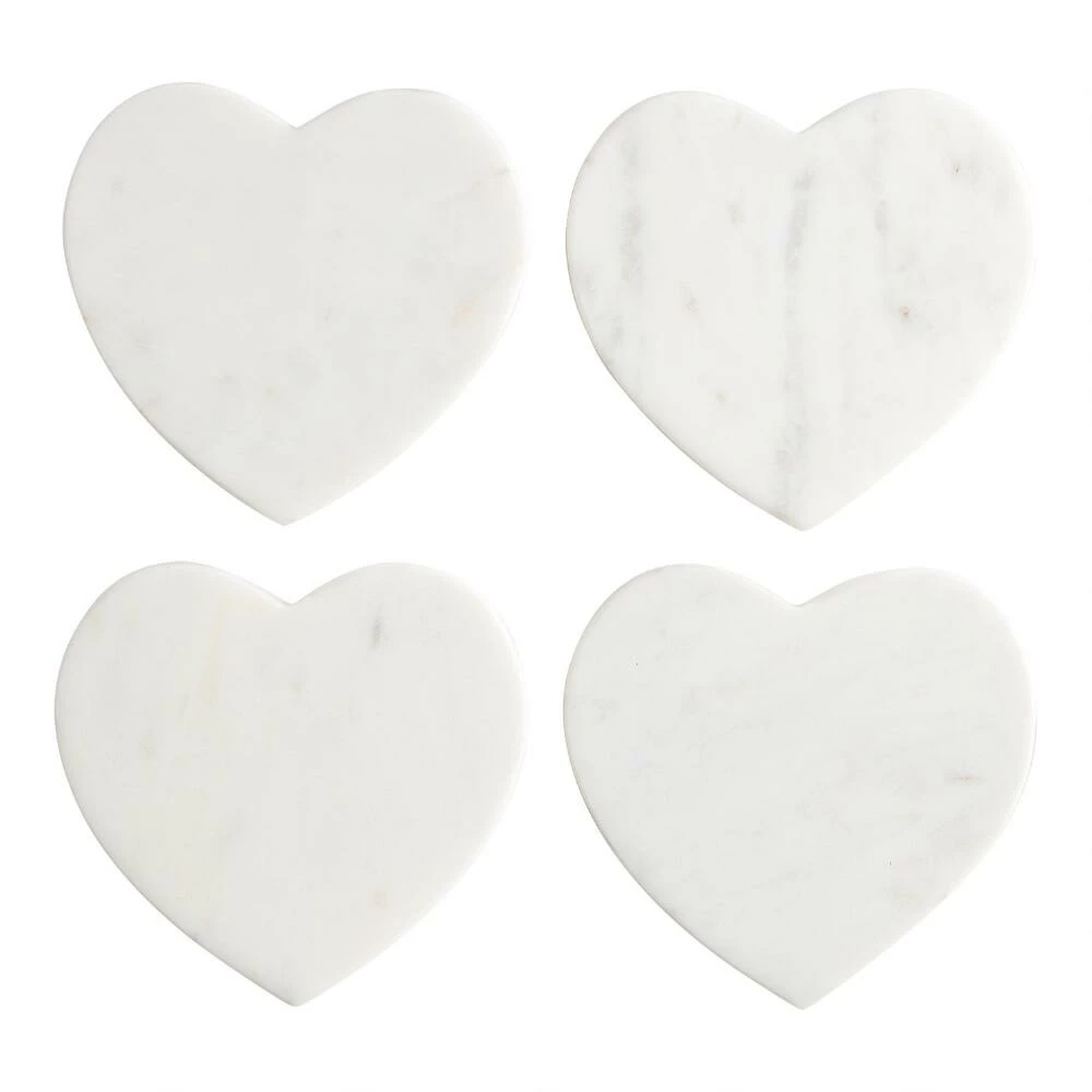 Brighten up the room and protect tabletop surfaces with our heart-shaped coasters lovingly cut from genuine white marble. Offer your guests an extra heartfelt welcome when you slip one of these charming coasters under their drink.
