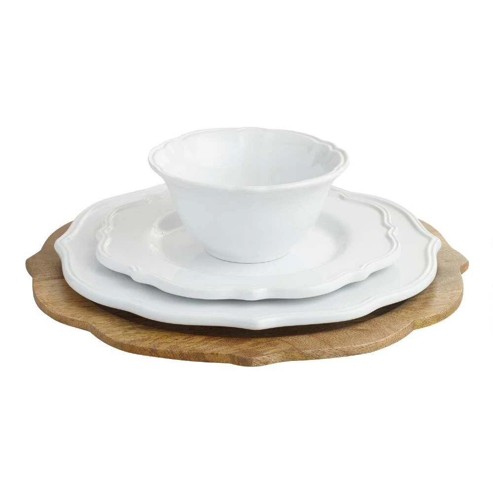 Made of mango wood with a sophisticated baroque-inspired silhouette, these chargers elevate the look of your place settings. With natural variations in wood grain from piece to piece, these one-of-a-kind chargers are versatile enough for both everyday meals and entertaining.