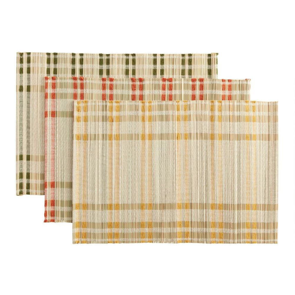 Add color and texture to your table with our woven cotton and straw placemats. Featuring a fetching farmhouse plaid pattern in your choice of green, rust and yellow hues, this placemat is great for everyday meals and layering with other table linens for special occasions.